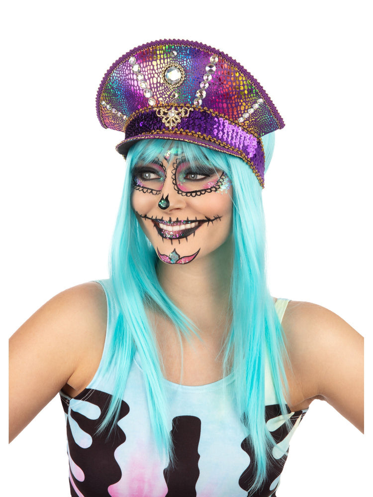 Top off your costume with this Festival Military Hat Purple Power from Rubies. Perfect for Halloween, Carnival, theme parties or just dressing up.