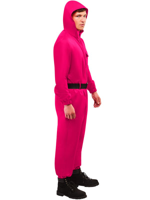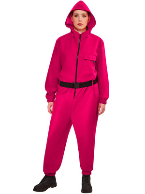 Huldige dem kultigen Look der Guards mit diesem auffälligen Overall, der mit Kapuze und Gürtel besticht. Mach mit bei Squid Game, der kultigen Netflix-Hitserie.