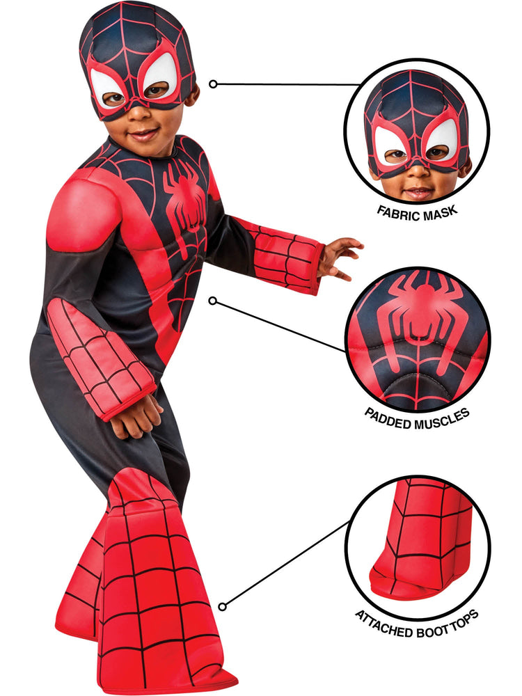 Spider-Man, Ghost Spider und Miles Morales sind alle Teil der Bande auf Disney+ in Marvel's Spidey and His Amazing Friends, der ersten von Disney Animation produzierten Vorschulserie. Dieses bezaubernde Miles-Morales-Kostüm für Kleinkinder mit gepolstertem Brustkorb und Armen sowie einer Kopfbedeckung aus Stoff wird die Spinnensinne zum Schwärmen bringen. Schwingen Sie sich in Aktion und holen Sie sich das perfekte Geschenk für jede Verkleidungsgelegenheit in diesem Jahr.