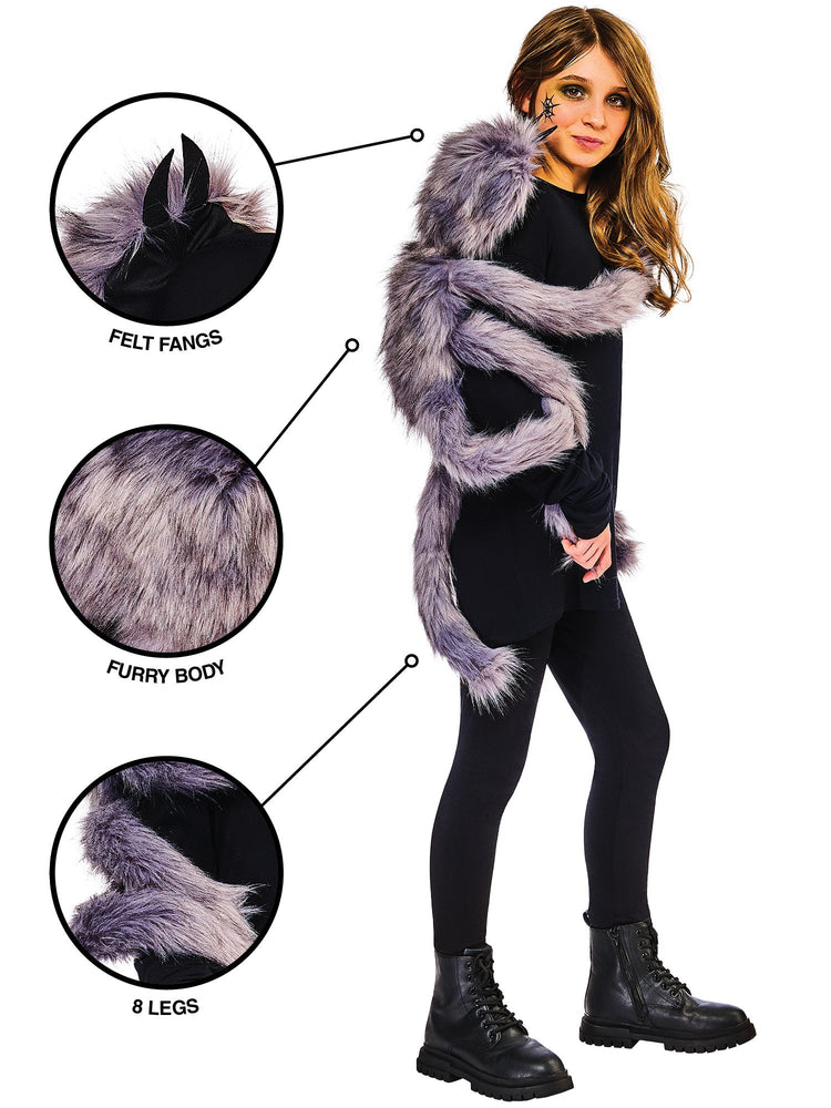 Embrace the eerie allure of Halloween with this whimsical wrap-around furry spider that captivates with its playful charm and exuberant spookiness. It's not just a decoration; it's an invitation to revel in the spine-tingling enchantment of the season.