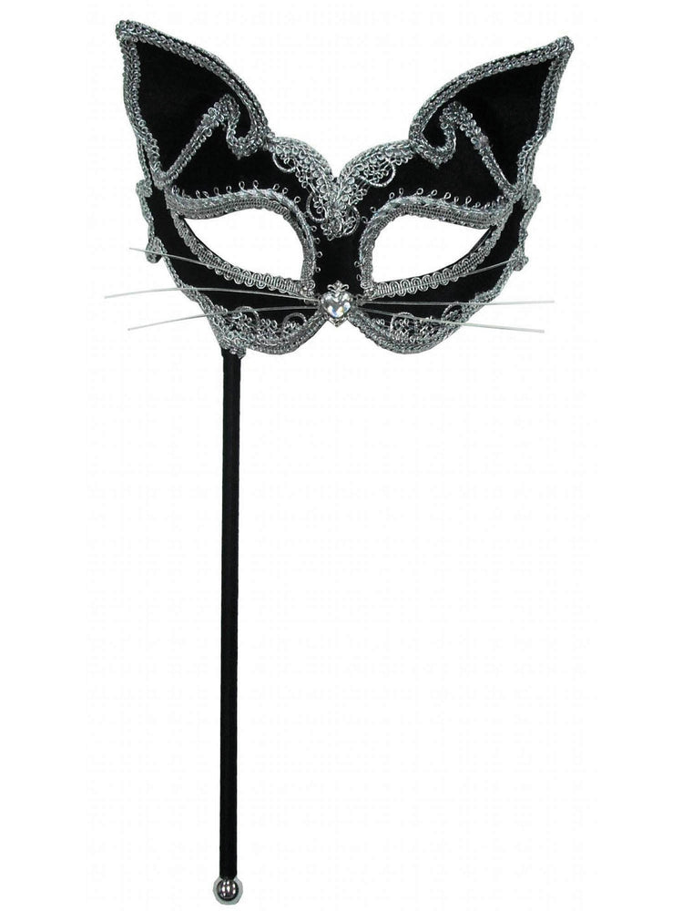 Maak je outfit af met dit Kattenmasker op stok van Rubies. Een veelzijdig stuk voor Halloween, carnaval, themafeesten of alledaags verkleedplezier.
