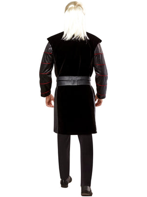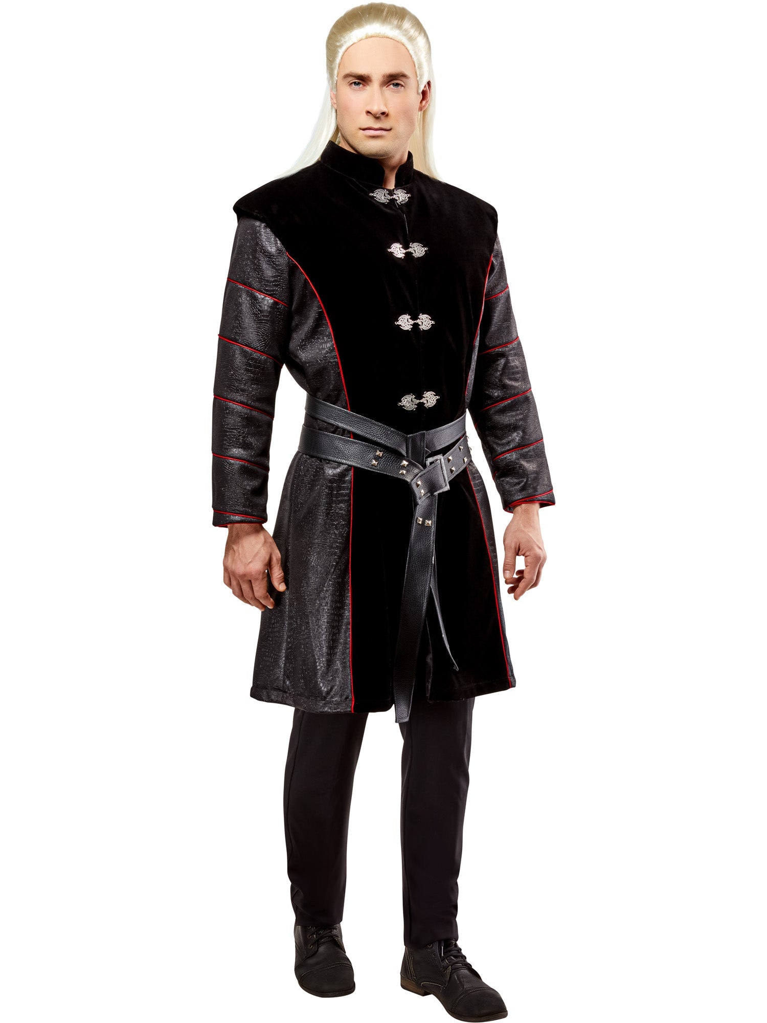 Ga op reis door de wereld van macht en intriges met ons Daemon Targaryen Kostuum, geïnspireerd door Warner Bros' bekroonde serie House of the Dragon. Dit kostuum heeft een gevoerde tuniek versierd met metalen sluitingen en schoudervullingen, die de essentie van een wereld vol drakenrijden, ijzeren tronen en burgeroorlogen vastleggen. De dubbele riem en gesp van imitatieleer zorgen voor de finishing touch, waardoor het de perfecte keuze is voor liefhebbers, cosplay-evenementen of om ondergedompeld te worden in de dramatische allure van de Targaryen-erfenis nu seizoen 2 nadert.
