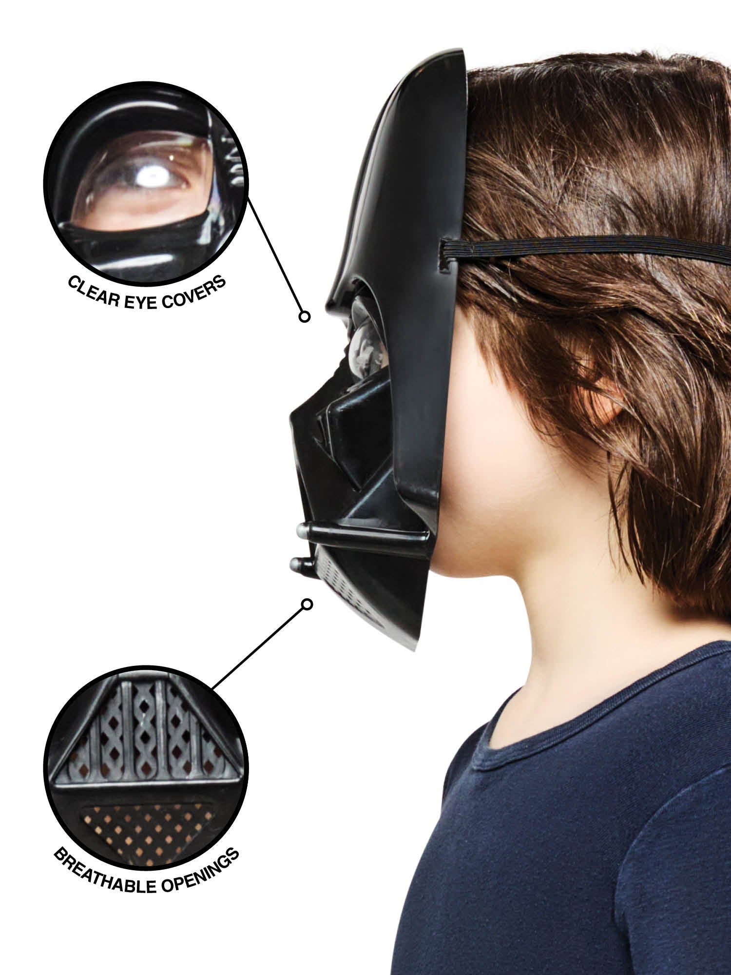 Ultimate villain of the original trilogy, Darth Vader was born Anakin Skywalker, a Jedi lured to the dark side by Palpatine. This iconic Lucas Film and Disney anti-hero of the Star Wars series, Darth is father to Luke and Leia and characterised by his black robes, cape, helmet and breathing device. Become the reigning Sith Lord of the Galactic Empire today - and may the force be with you