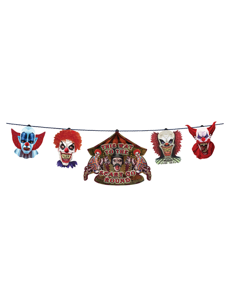 Evil Carnival garland with 4 evil clowns and 1 sign