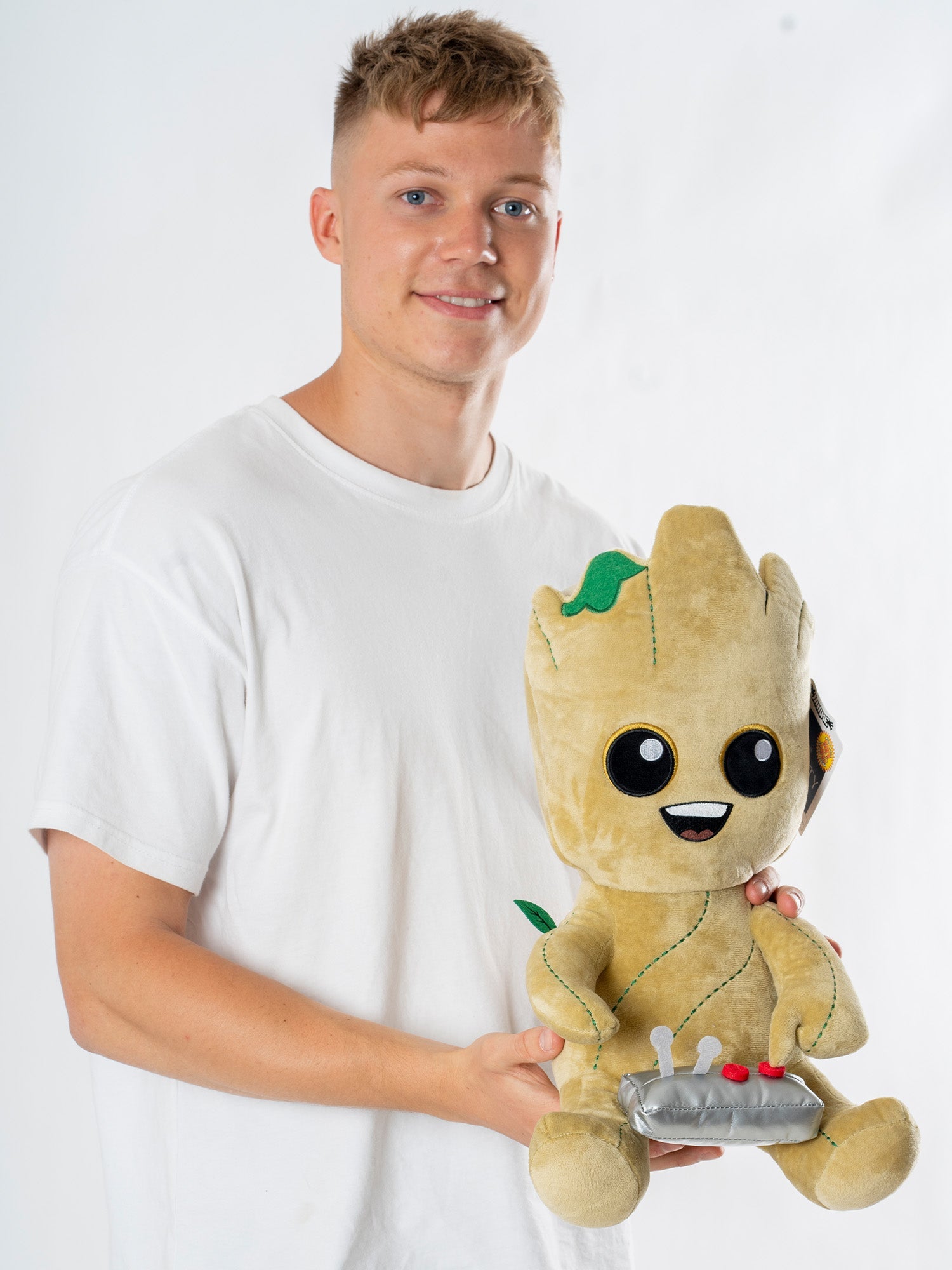 Ze noemen zichzelf the Guardians of the Galaxy en dat is precies wat ze gaan doen... maar meteen nadat ze dit level hebben verslagen. Vanuit het Marvel Universum brengen Kidrobot en Disney dit vakantieseizoen het perfecte cadeau tot leven voor al die Avengers en videogamers met de nieuwe Guardians of the Galaxy Video Gamer Teen Groot HugMe Pluche. Knijp en knuffel alle 16 centimeter van deze Groot HugMe vibrerende pluche vriend en hij zal je terug knuffelen! Zoals alle HugMe pluche wordt ook deze geleverd met een vibrerende trilfunctie met verwijderbare batterijen voor een extra knusse sensationele knuffel.