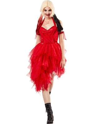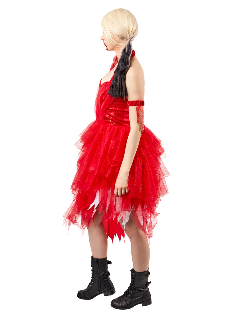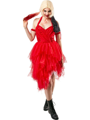 Travel to Corto Maltese with this Harley Quinn Dress. Straight out of the Suicide Squad 2 (2021) film, this bright red dress with gloves is a direct throwback to her original comic book aesthetic with black and red motifs, whilst the dress itself features a fitted bodice and ruffle skirt in a high-low style. The perfect outfit for Halloween as well as themed parties and birthdays, this dress is the perfect way to become the Maid of Mischief.