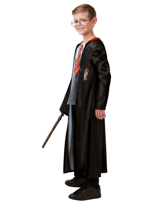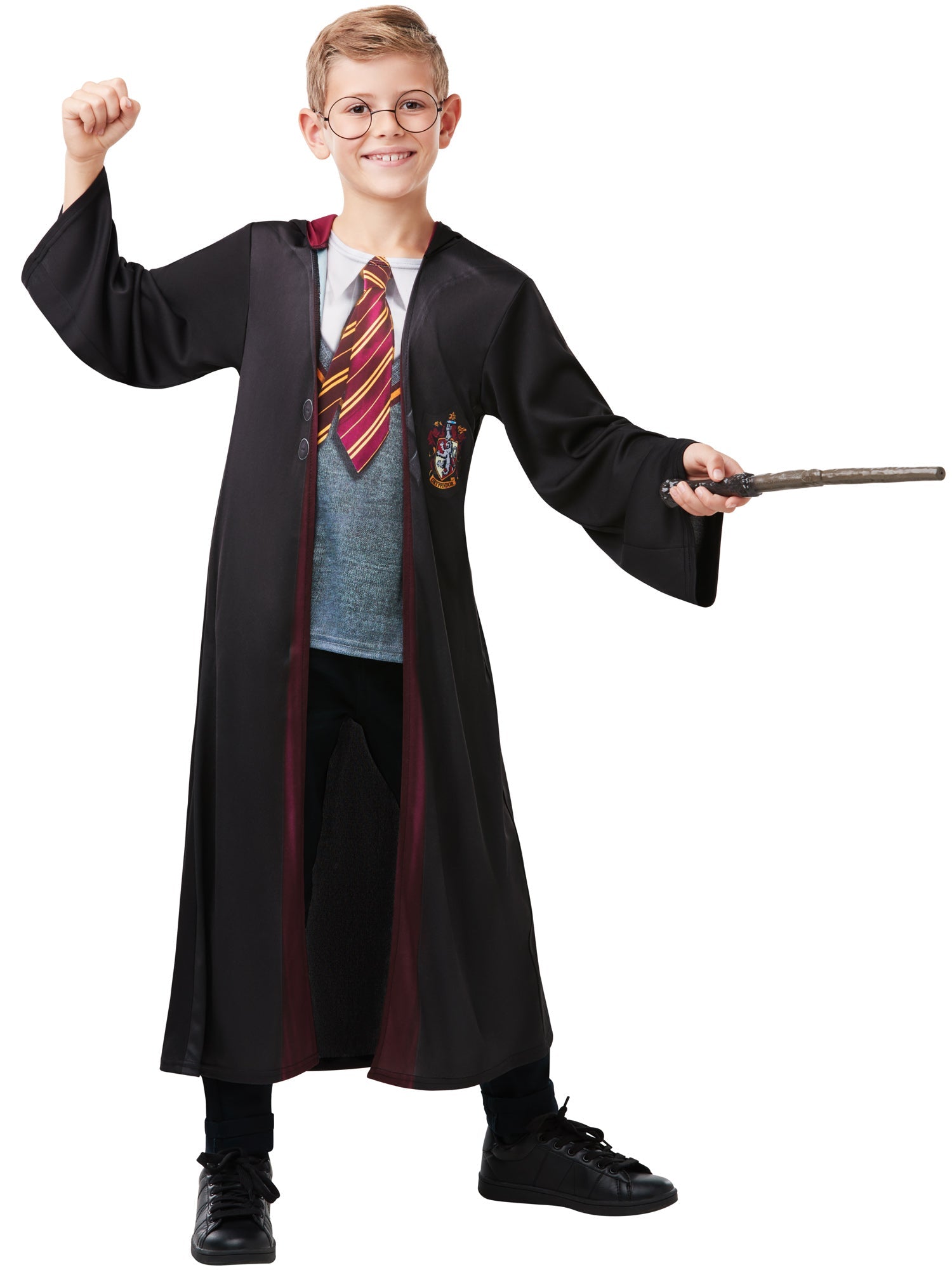 Photo-real hooded robe from the Wizarding World of Harry Potter. Look like Daniel Radcliffe in an instant with attached printed shirt and tie, glasses and wand. Officially licensed Harry Potter product, developed in the UK.