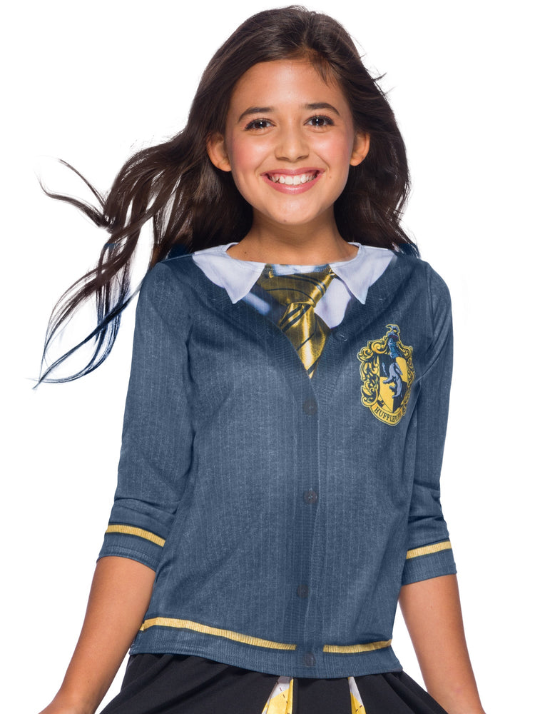 It is the yellow and black House at Hogwarts School of Witchcraft and Wizardry, in the famous Harry Potter series by author J K Rowling. Hufflepuff is known for its hard working, dedicated, patient, loyal and fair members and was founded by Welsh witch, Helga Hufflepuff. With a badger as its icon, famous members include Newt Scamander and Cedric Diggory. Novels in this series include Harry Potter and the Philosopher's Stone, Harry Potter and the Chamber of Secrets, Harry Potter and the Prisoner of Azkaban, Harry Potter and the Goblet of Fire, Harry Potter and the Order of the Phoenix, Harry Potter and the Half Blood Prince and Harry Potter and the Deathly Hallows. Includes digitally printed top with full-length sleeves. Printed detail Includes cardigan with cuff details and buttons, shirt, tie and house emblem.