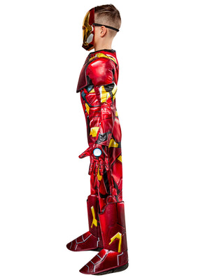Get ready to save the world with this premium Iron Man costume. The costume features a digital print on a shine jersey jumpsuit with boot covers and a TPU metallic badge on the chest. The electroplated mask with blue acetate eyes completes the look and allows you to see clearly while you're fighting off villains.
