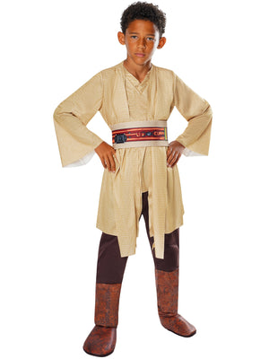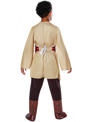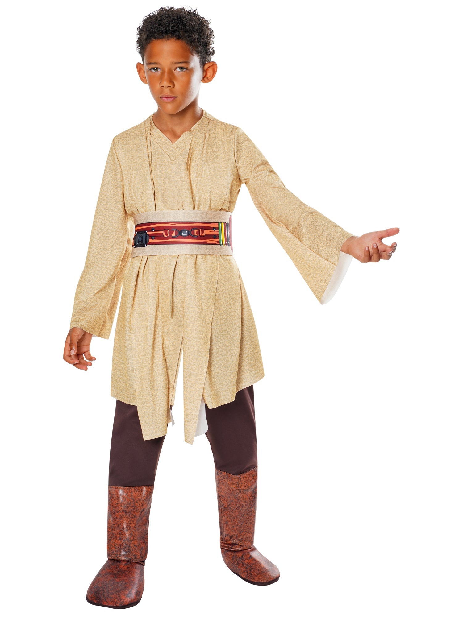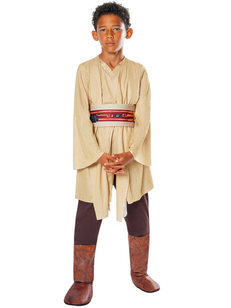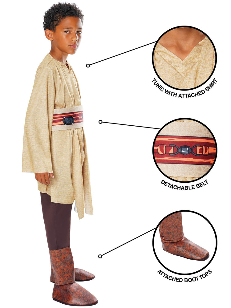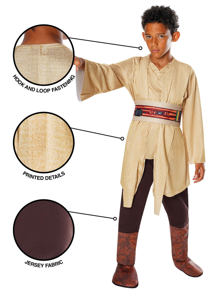 It is a collective term for a species in the Star Wars series. Those who value knowledge and wisdom, fight for good over evil and fight against the Dark Side. The Jedi are made famous by names such as Obi- Wan-Kenobi, Yoda and Luke Skywalker are martial artists who use the spirit of "The Force" along-side their trademark weapons, the lightsaber. Age old and timeless, fight like a Jedi in your hooded brown robe today. Includes Tunic with attached shirt in textured fabric with full length sleeves Trousers with attached boot tops Belt with printed details and fasten at back Lightsaber not included This is an officially licensed Star Wars product
