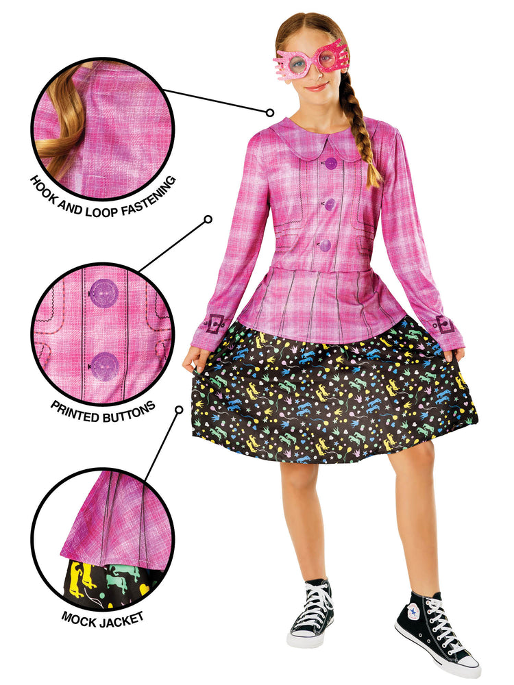 Although some people call her ‘Loony’ Lovegood, it is known that she has one of the most brilliant minds and wildest imaginations in the whole of the Wizarding World. A student at Hogwarts School of Witchcraft and Wizardry, Luna Lovegood is one of Harry Potter’s most trusted friends and leaders in the fight against Voldemort. The blonde Ravenclaw student is known for her enchanting and unusual sense of style, brought to life in this costume, ideal for World Book Day! Featuring a multi-patterned dress and a pair of fabric glasses straight from the pages of her fathers magazine, the Quibbler, any brave witch can try their hand at spells and become Luna!