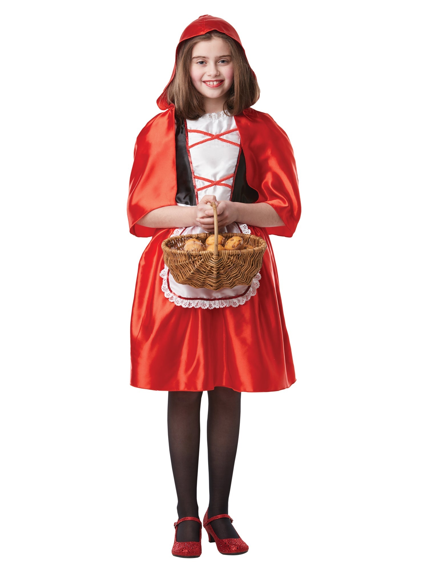 From the classic fairytale, Little Red Riding Hood, this nursery rhyme inspired costume will have your Book Week or Fairytale Dress-Up worries all sorted. Just watch out for the Big Bad Wolf as you skip off through the woods to Grandma's House. Includes dress with faux satin shirt and corset-like vinyl detail with ribbon ties, puff satin sleeves with lace trim at cuff, gingham satin skirt with lace trim at hem, hooded cape with faux-fur trim around edges.
