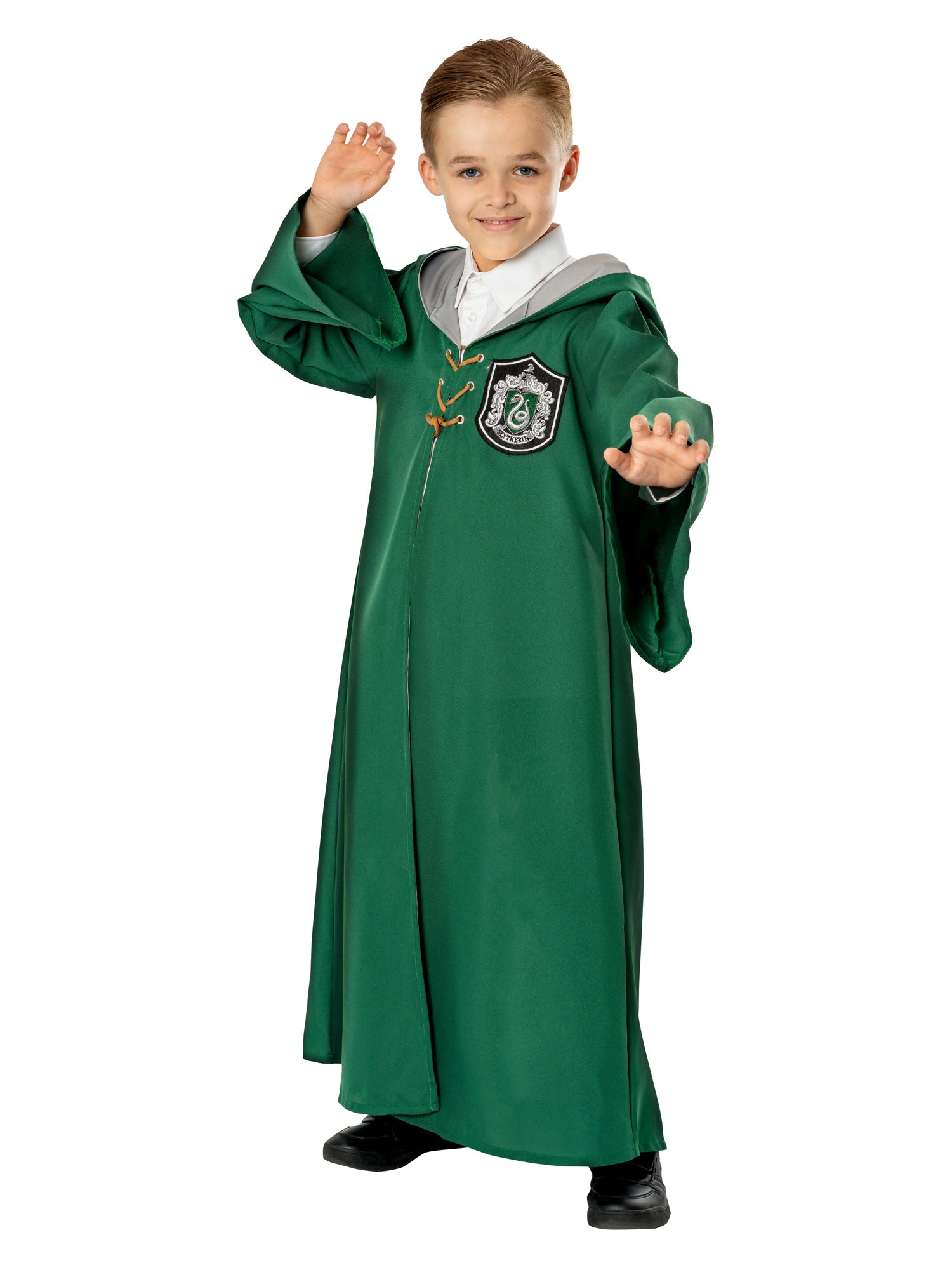 Are you resourceful? Determined? Prideful? Then you could be a member of Slytherin, the green and silver house known for its snake logo. Will you compete against Gryffindor in Quidditch or hang out in the Slytherin Dungeon Common Room? Will you make friends with Draco Malfoy and the rest of the students in Slytherin? Get dressed in your Hogwarts uniform- your trusty robe with your house colours emblazoned on it and go on adventures of our own in ths School for Witchcraft and Wizardry. A perfect choice for a present for a Harry Potter fan or for Book Week. Also seen in the global phenomenon, the Harry Potter film series.