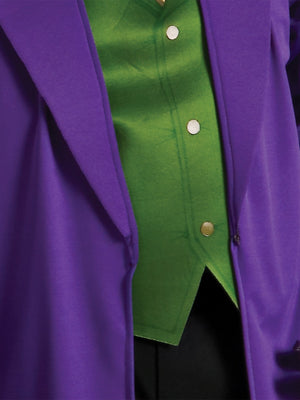 A criminal master-mind and possibly one of the most infamous supervillains in the DC Comics universe, The Joker - the smiling assassin - is arch-nemesis of Batman and nearly all DC Comics superheroes. He stars in comic books, films and TV series, always wearing his painted red smile to hide his damaged face beneath, wild green hair and purple suit. Resident psychopath of Gotham City, The Joker has been played by various actors in TV series and many Warner Bros movies over the decades. Actors like Jack Nicholson and Heath Ledger have taken this crazed character to new heights of stardom. With a sadistic sense of humour, the "man who laughs" does not always get the last laugh against true heroes like the Great Batman. See The Joker play his deck of cards in films like Batman Begins (2005), Brave and Bold (2008), The Dark Knight (2008) and Suicide Squad (2016). Includes long jacket with 3D lapel Attached vest with printed shirt and tie Moulded latex mask with painted features Gloves and pants not included This is an