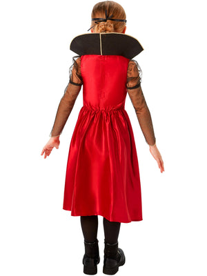 Vampires around you are sure to admire this elegant gown, finished with a wealth of filigree lace detail. Blink at them from behind the bat mask, spy their every move from behind the tall collar… then draw them into your evil web!