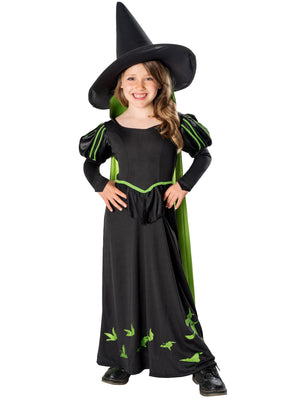 In je groene heksenkostuum ben je Dorothy's aartsvijand, de Wicked Witch of the West. Je probeert Dorothy's robijnrode schoenen te stelen, maar pas op, Glinda en zelfs de Boze Heks van het Oosten zijn niet ver weg. Uit de classic filmThe Wizard of Oz" uit 1939, probeer de heksen te slim af te zijn! Inclusief jurk met polyester lijfje met vlechtwerk in de taille en opstaande kraag, Juliet mouwen over de hele lengte met groene bies, polyester rok met glitterprint en peplum Puntmuts met brede rand en aangehechte cape met contrasterende stiksels.