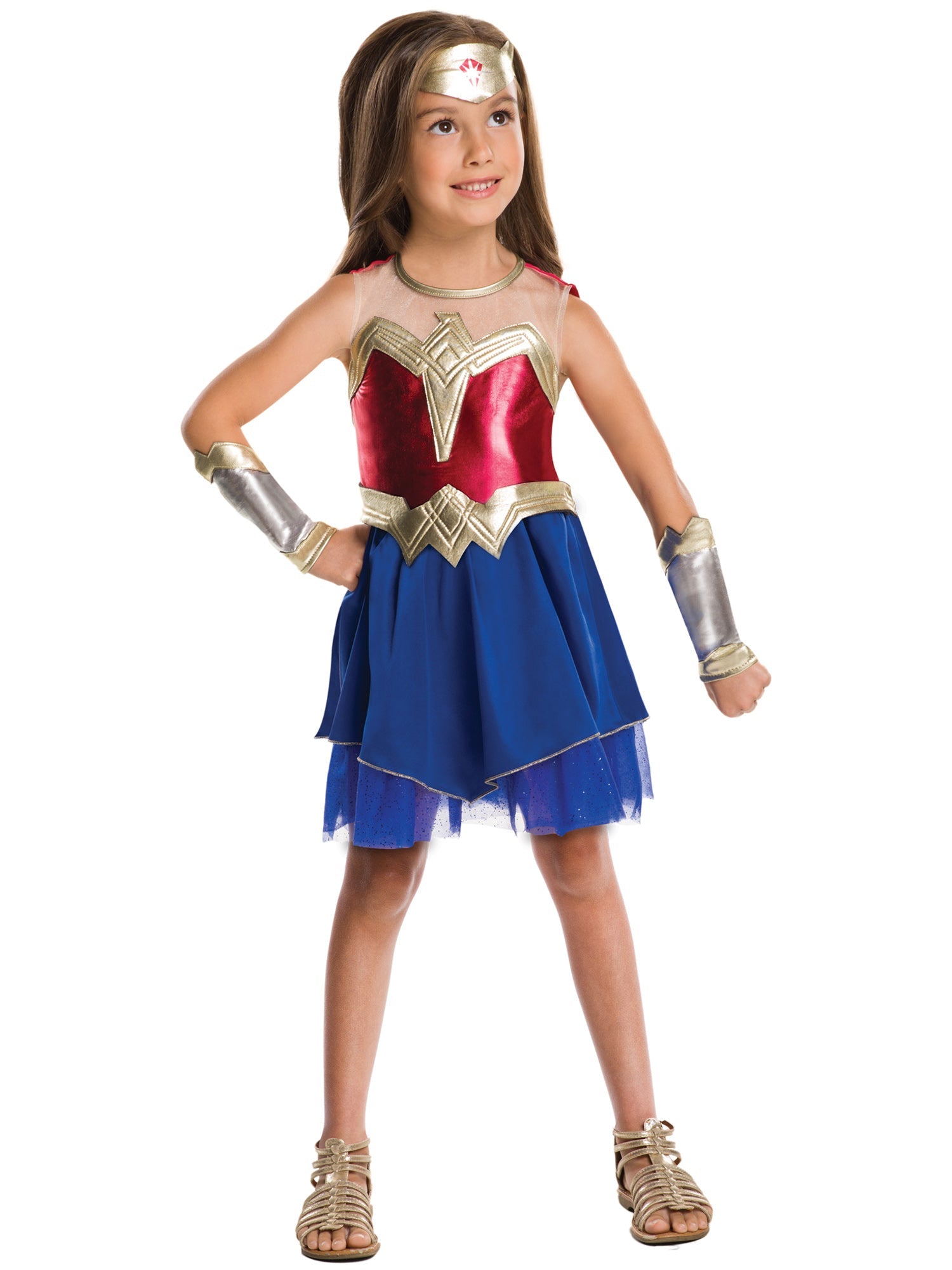 Ally your fate to that of Batman and the members of the Justice League. You are Diana Prince, an Amazonian warrior princess descended directly from Zeus. The one-piece dress Includes a necklace and a metallic finish to the bodice and sewn-in belt. Matching gauntlets and a headpiece also star!
