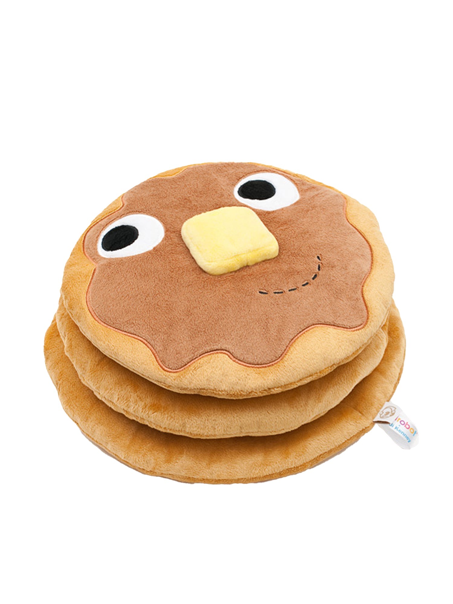 Eindelijk kun je je ontbijt omhelzen - echt knuffelen en knijpen - zoals je altijd al wilde, zonder dat je stroop op je Hermès-sjaal hoeft te smeren of boter op je wikkeljurk van Diane von Furstenberg. Kidrobot heeft deze 10-inch pannenkoekenpluche toegevoegd aan de Yummy World Pluche lijn. Deze pannenkoekenstapel is gemaakt van fluweelzacht pluche van hoge kwaliteit, geborduurd met googly-ogen, een boter-pat neus en een enorm lachende mond. Echt een icoon in wording.