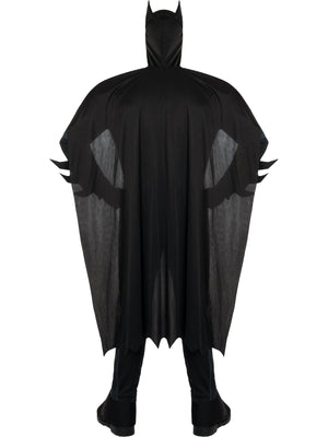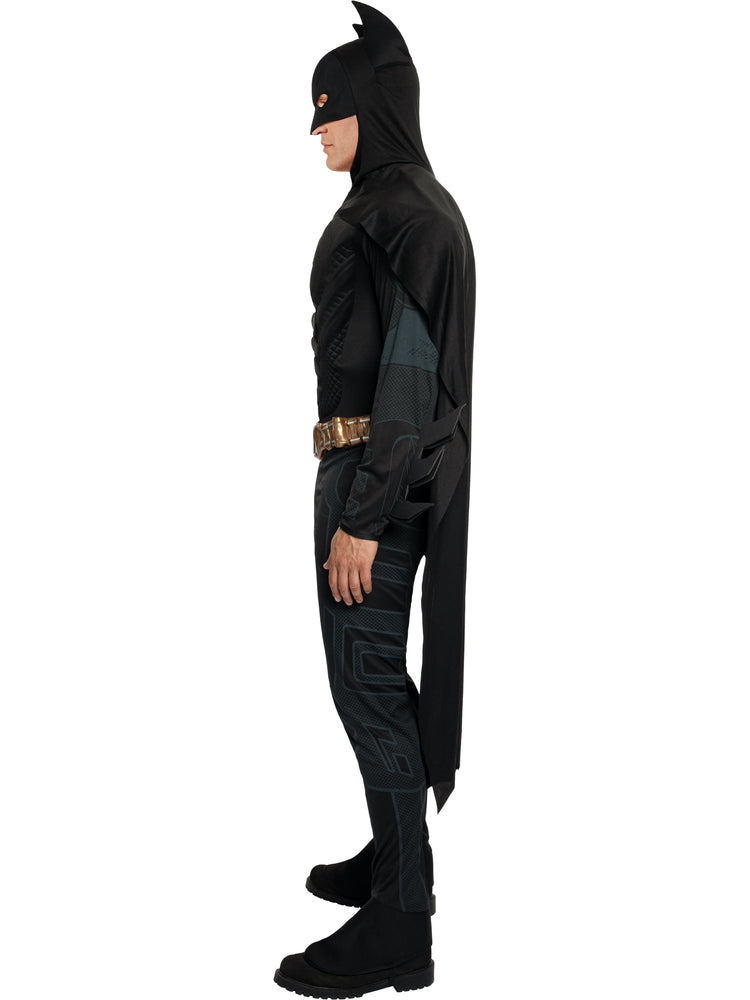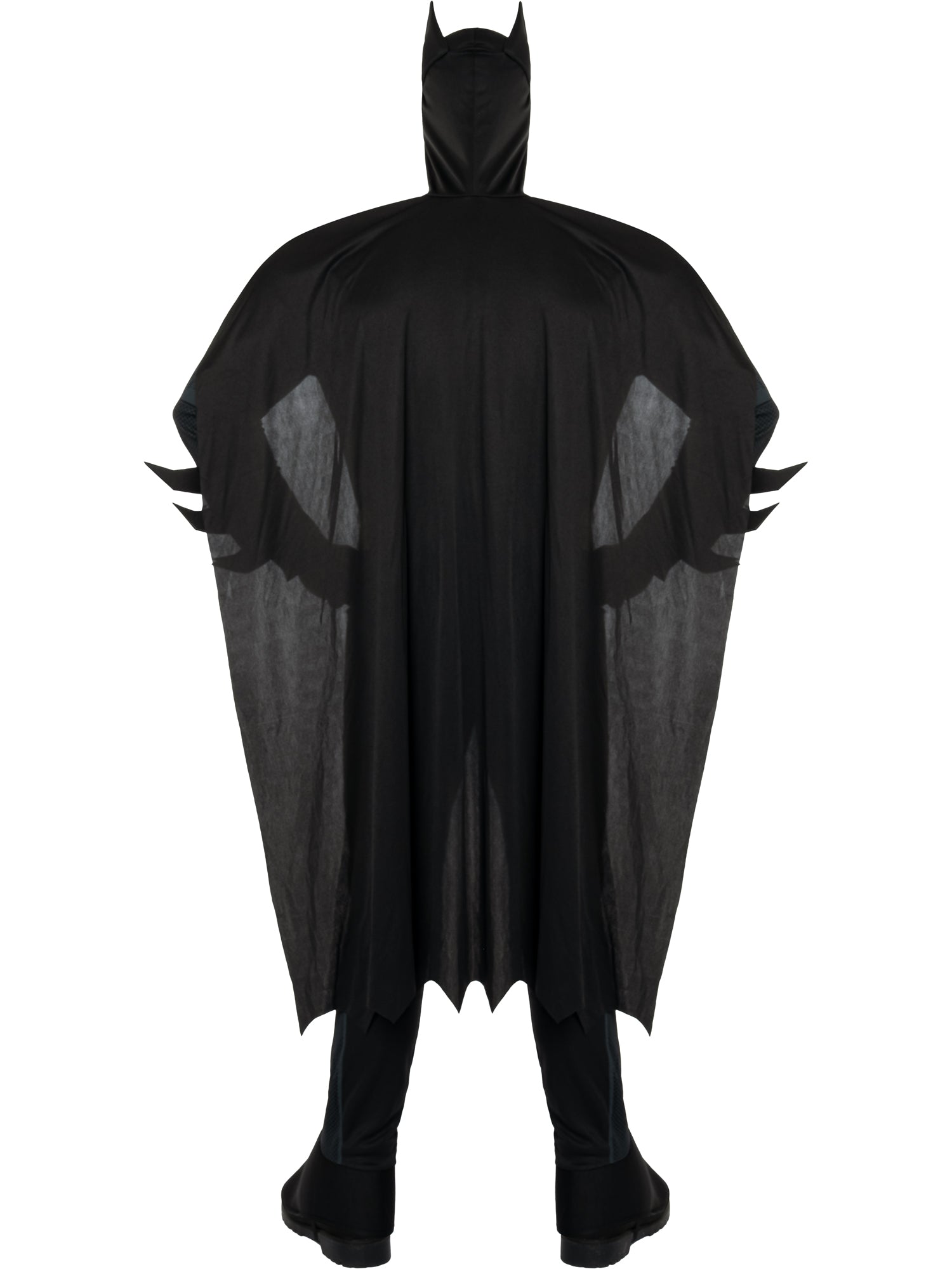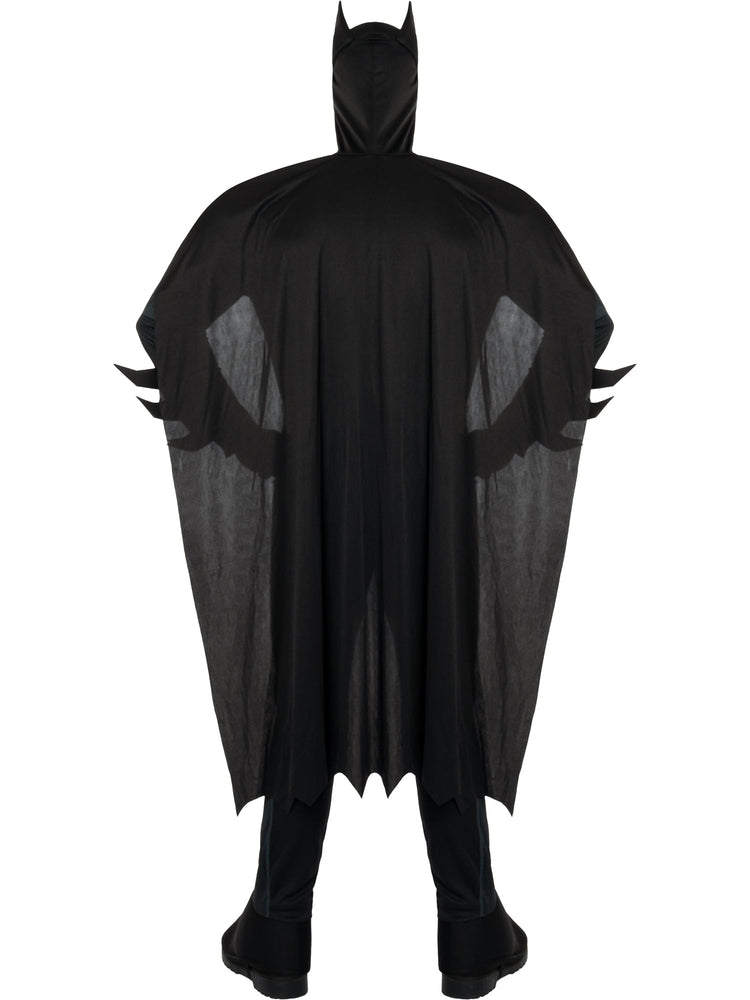 He is arguably the most famous character in DC Comics - he is the Dark Knight. By day he was the eccentric Gotham City tycoon Bruce Wayne, but by night Batman, the Dark Knight was the ultimate Gotham City Crime fighter. With side-kick Robin, this classic superhero uses his batarangs, bat cycle and bat mobile to out-smart the likes of The Riddler, The Penguin and The Joker. Played by Actor Christian Bale he is the star of Warner Bros famous Trilogy "Batman Begins" (2005) and "The Dark Knight" (2008) and "The Dark Knight Rises" (2012). As much-loved today, as ever - become The Batman today! Includes jumpsuit with EVA moulded torso plus full-length sleeves with digital print and attached bat fins, trousers with printed details and attached boot tops, mnoulded utility belt with painted features and ties at back, moulded mask with attached fabric hood and attached cape with scalloped hem.