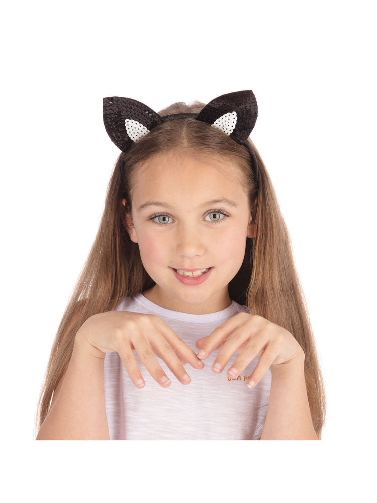 Top off your costume with this Black Sequin Cat Ears from Rubies. Perfect for Halloween, Carnival, theme parties or just dressing up.