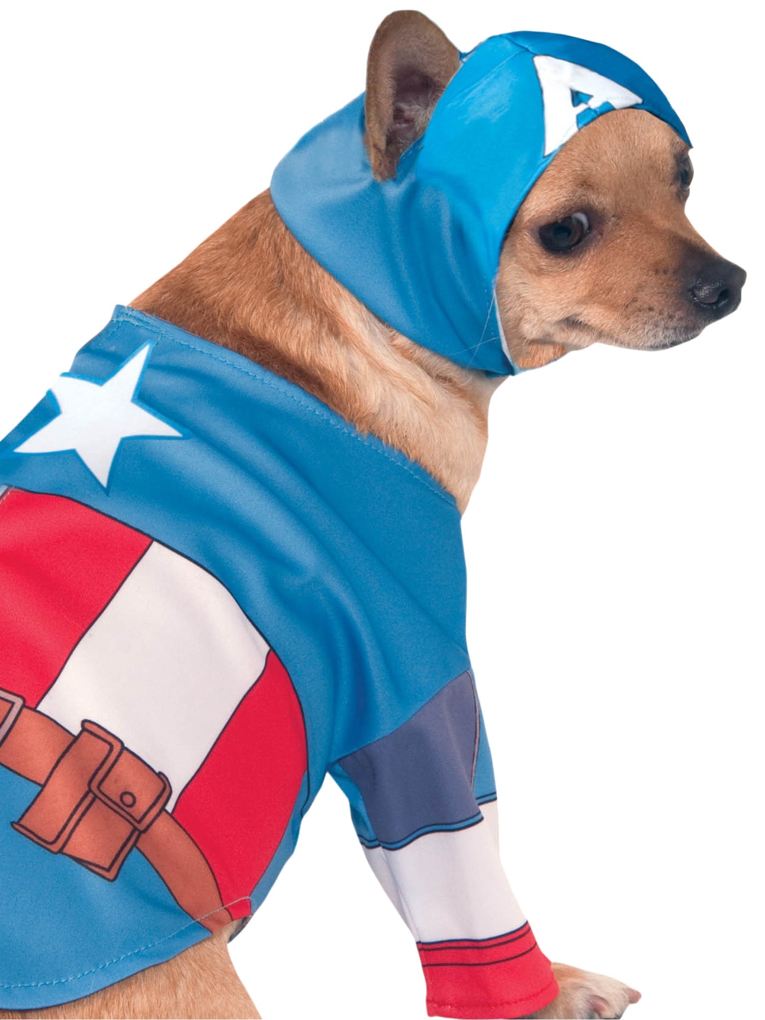 Through the Super-Soldier Serum and "Vita-Ray" treatment, Captain America, also known as Steve Rogers, is an Avenger whose strength, endurance, agility, speed and reflexes are at the top of natural human potential. A true superhero, he is known for his trademark red, white and blue suit and the shield with a star. Captain America first appeared in Marvel comics and more recently, played by Chris Evans, in the blockbuster movies in Marvel's Cinematic Universe. His films include Captain America: The First Avenger (2011), The Avengers (2012), Captain America: Winter Soldier (2014), Avengers: Age of Ultron (2015), Ant-Man (2015), Captain America: Civil War (2016), Spider-Man: Homecoming (2017) and Avengers: Infinity War (2018). Includes Top with digitally printed details on bodice and sleeves hook and eye closure fastens down middle of back Headpiece with printed details and holes for face and ears .