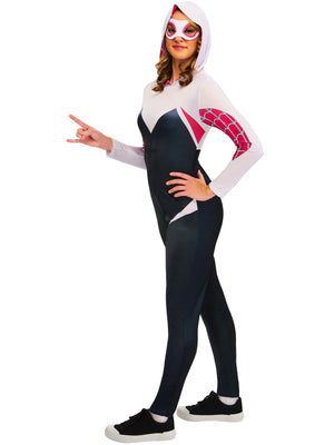 Immerse yourself in the superhero world of Ghost Spider with this officially licensed costume, inspired by the compelling hero from the Marvel universe. This dynamic jumpsuit, complete with a hood and mask, captures the spirit of the elusive hero. Embrace Ghost Spider's stealth and bravery and get ready to leap into action and become the hero you were meant to be.