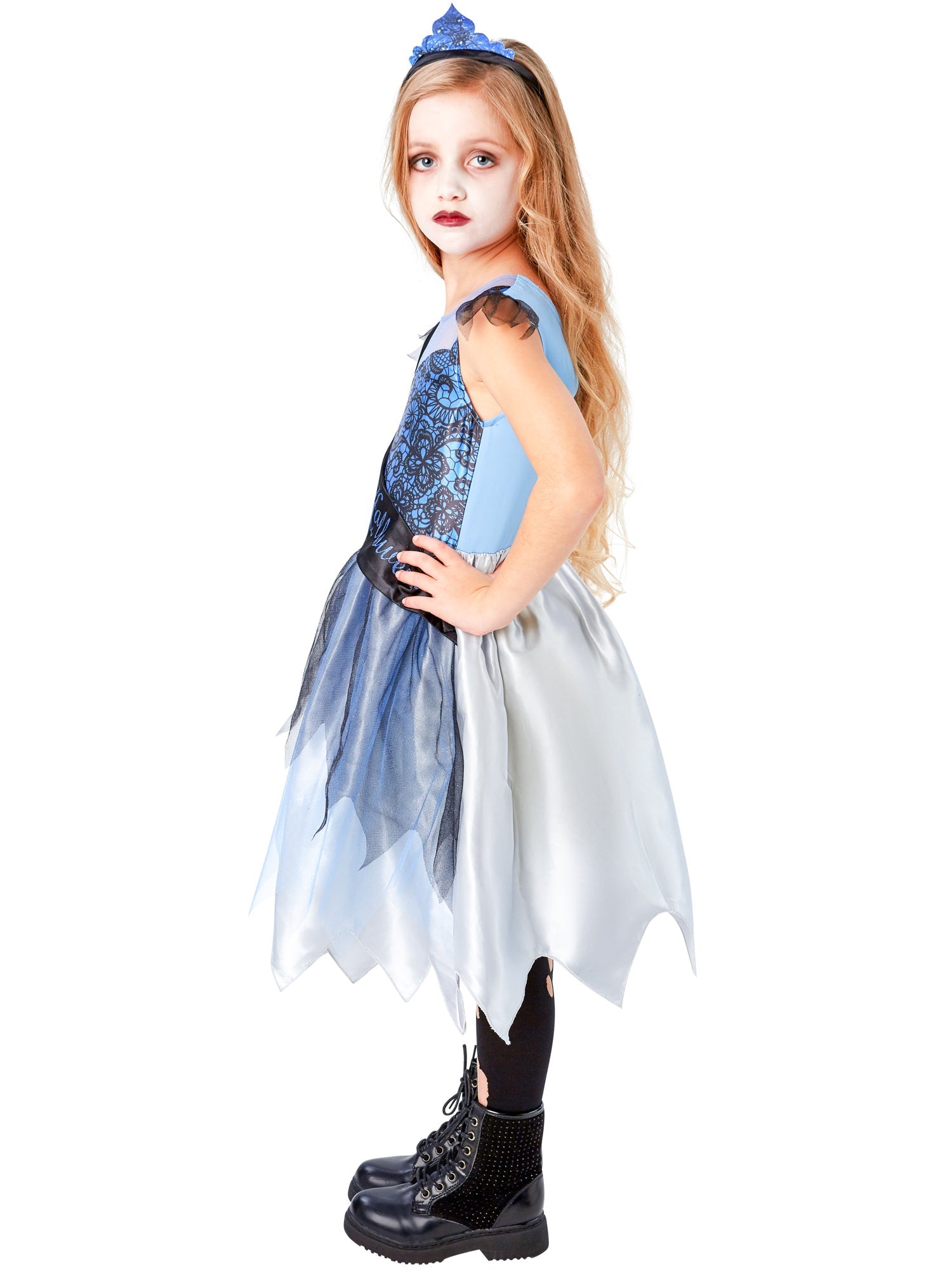 Dress, sash, tiara and corsage