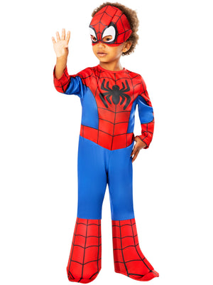 Your little one can embrace the fun spirit of your friendly neighborhood hero with this charming jumpsuit and mask costume set that captures the fun of high-flying adventures as Spider-Man.