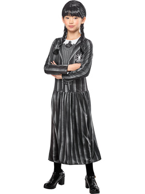 Embrace the macabre charm of Wednesday Addams with this intricately printed dress that captures her timeless gothic style. Every detail, from the haunting motifs to the somber silhouette, pays homage to the enduring legacy of the Addams Family. Slip into this enchanting ensemble and embody the spirit of all things delightfully dark and kooky.