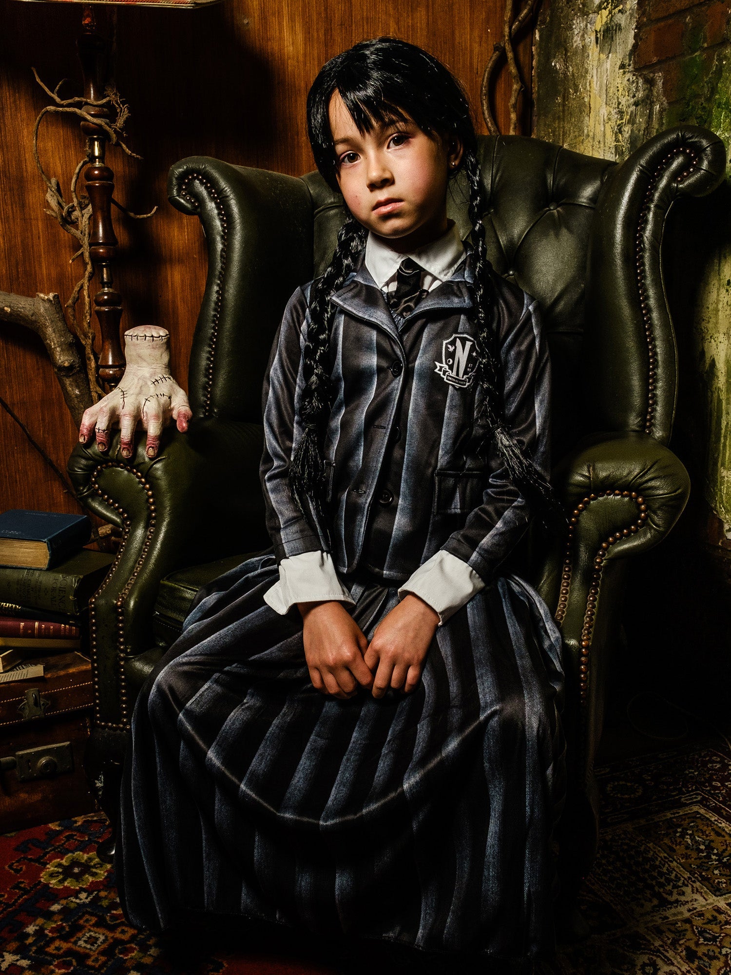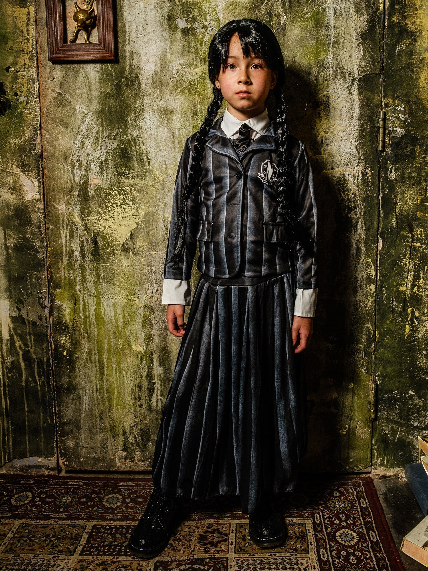 Get ready to channel your inner goth girl with our Wednesday Addams School Uniform costume! This costume is perfect for anyone who loves the dark and macabre and wants to add some spooky fun to their dress-up collection.